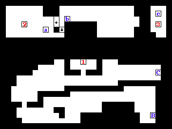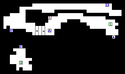 ・ 流砂は助走をつけた「マッハじてんしゃ」で進むことができる。同様に落とし穴も止まらずに助走をつけて進む。最初にここへ来たときは、「マッハじてんしゃ」をもっていないので、無視してBの階段へ行こう。